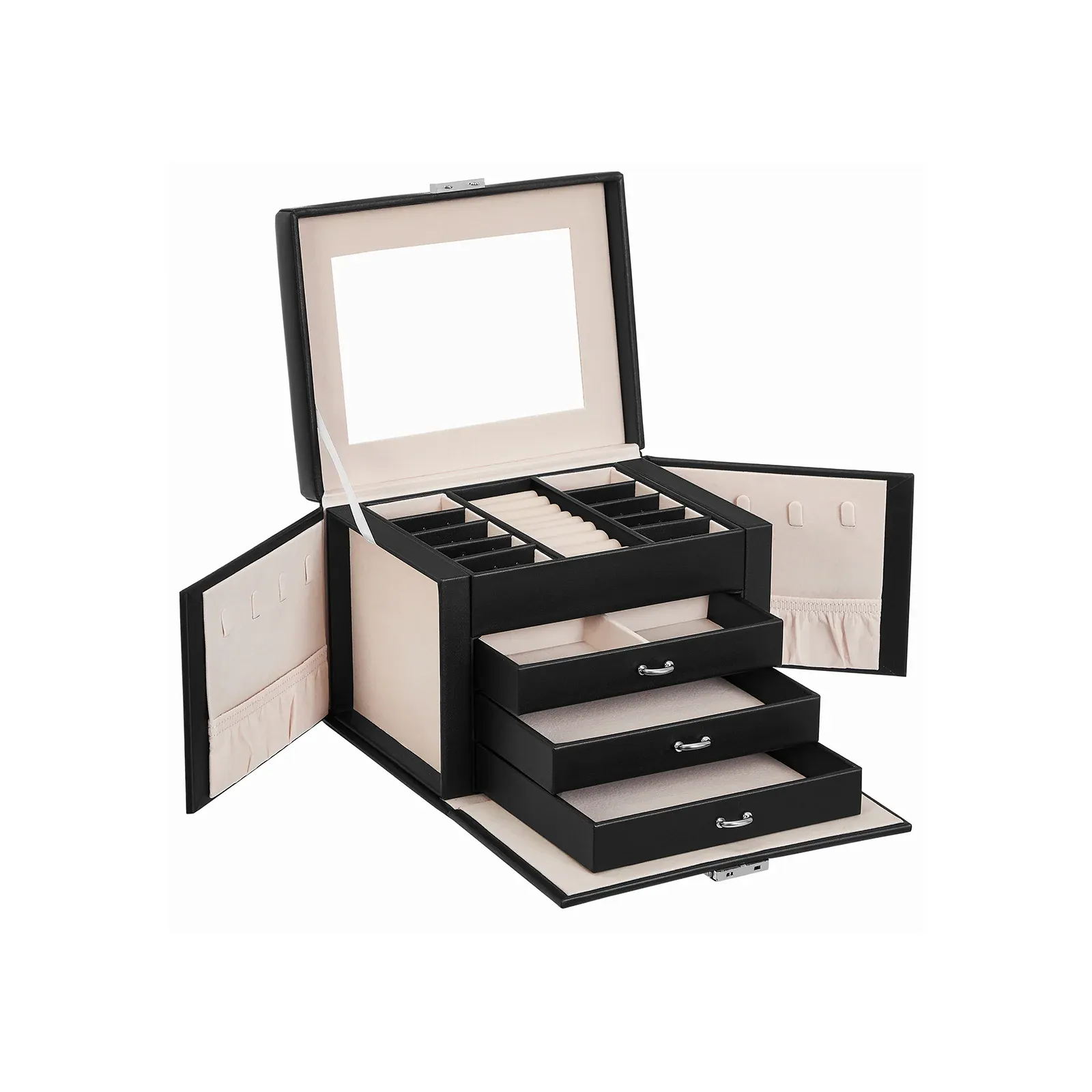 SONGMICS Boîte à Bijoux, Mallette à Bijoux, Coffret à Bijoux de Voyage, Organisateur de Bijoux Portable, avec 2 tiroirs, Miroir, Serrure et clés, verrouillable, 17,5 x 13,5 x 12 cm, Noir JBC154B01 B34JBC159W01 JBC159W01