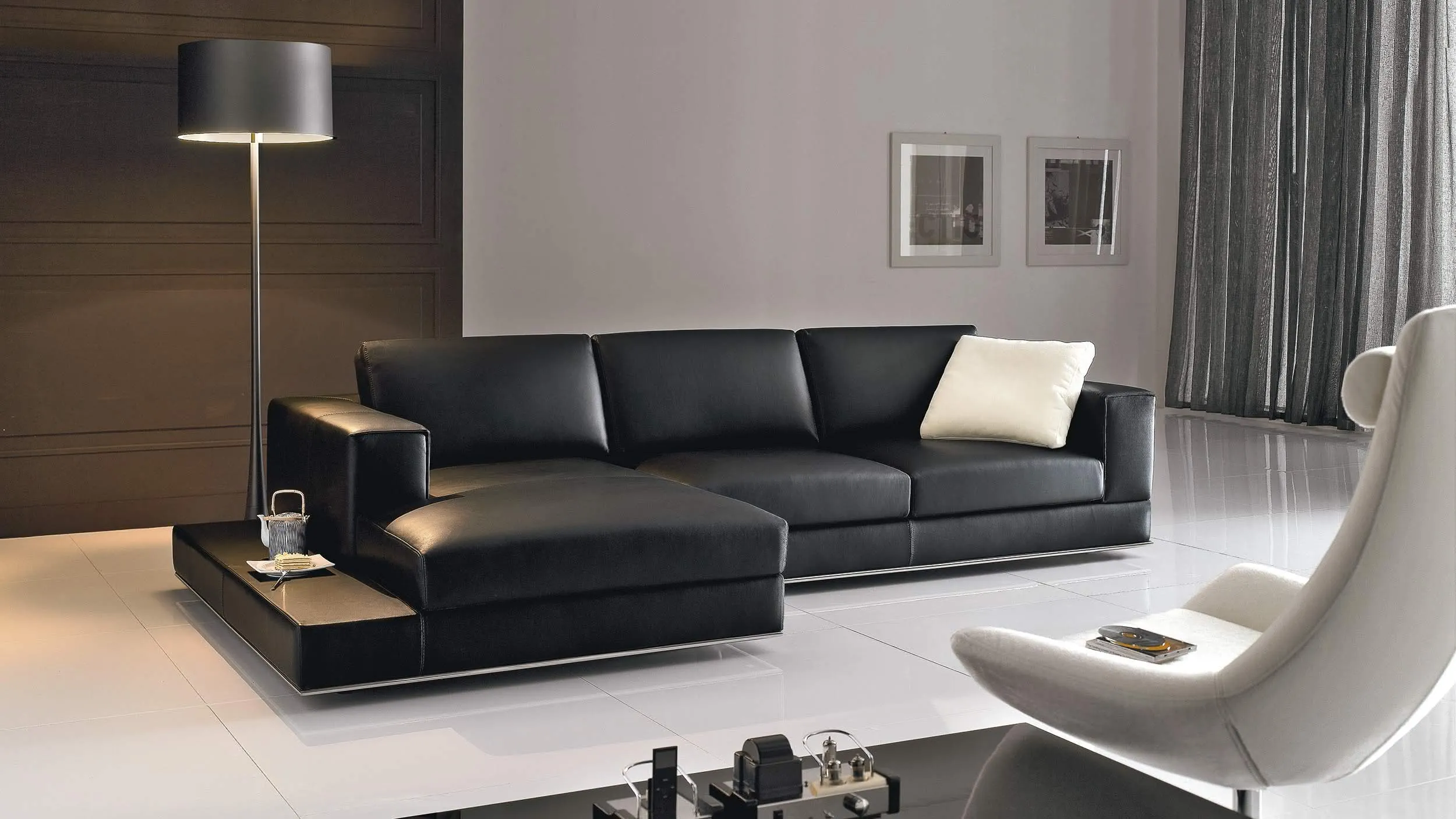 Un modèle qui dépasse l’idée du canapé basique, pour devenir salon design minimaliste et tout-en-un: en effet, à côté de l’accoudoir il y a une surface d’appui qui se prête bien à accueillir un plateau, des objets d’usage quotidien ou la sélection de vos livres favoris. Les coussins supplémentaires ne sont pas inclus.